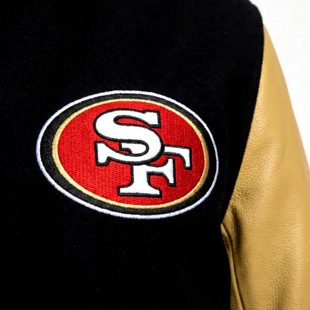 San Francisco 49ers Black Letterman Varsity Jacket with Leather Sleeves