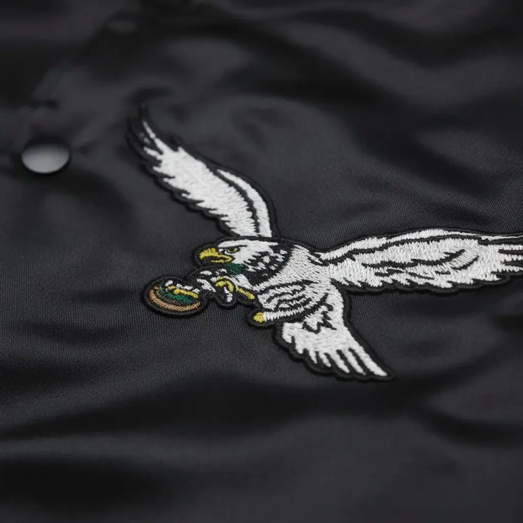 NFL Philadelphia Eagles Black Full Snap Satin Varsity Jacket Embroidery logos