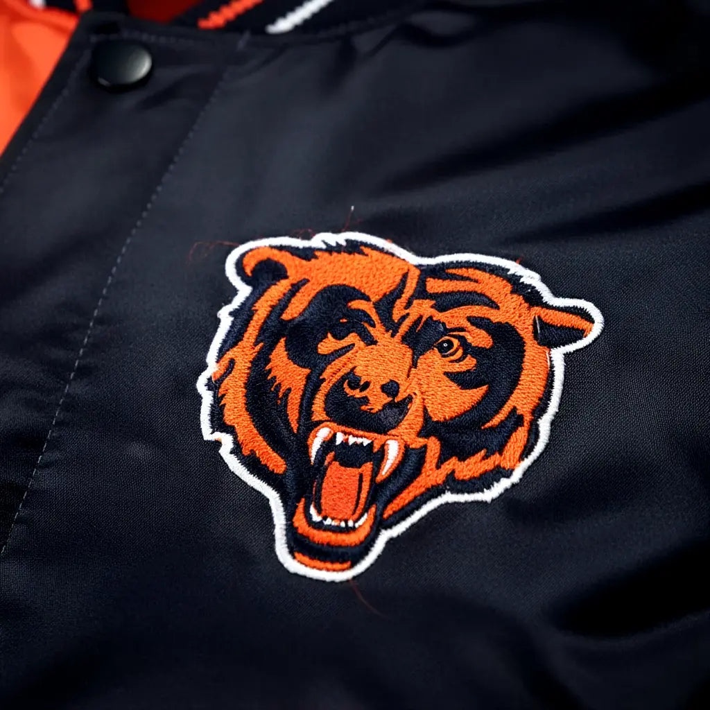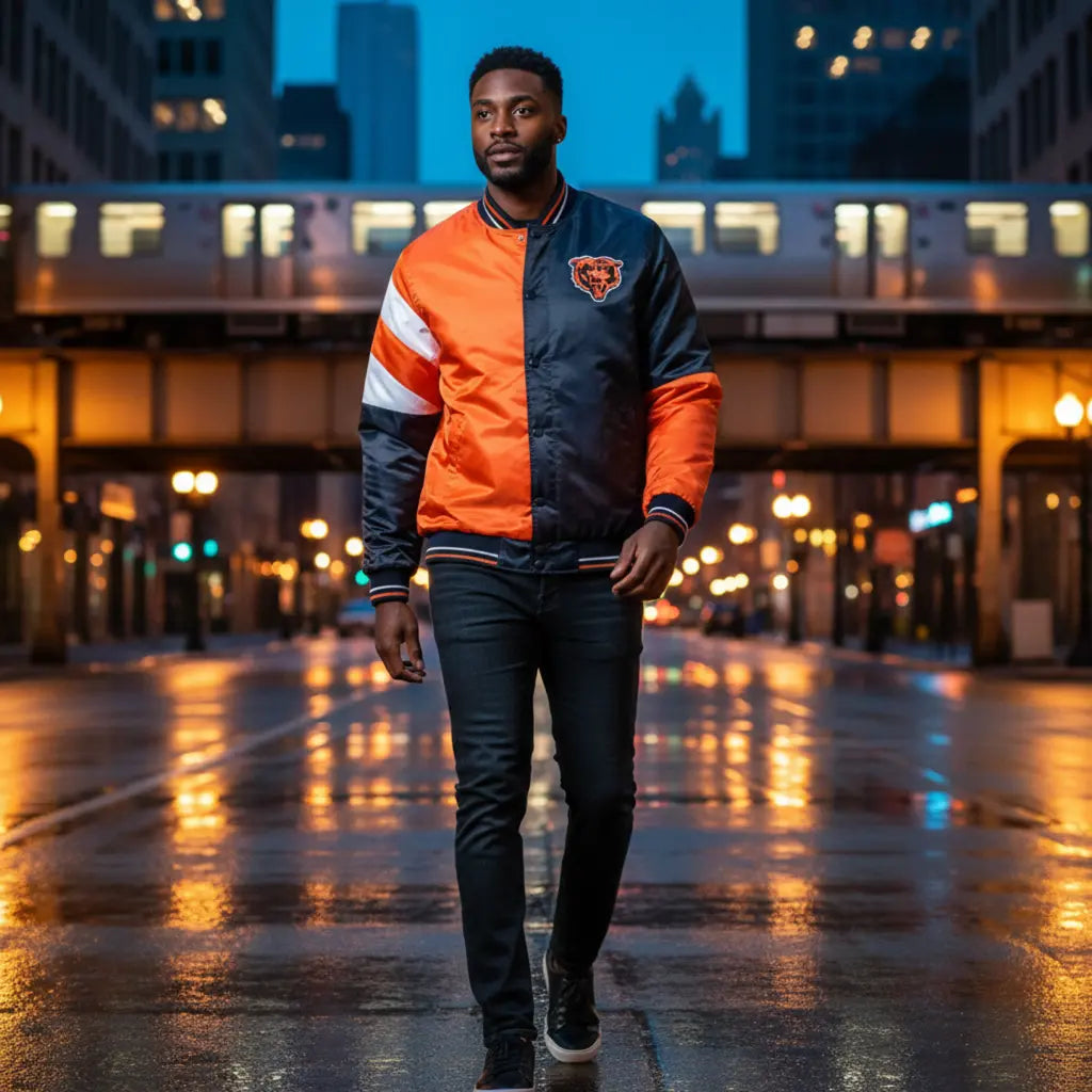 Mens NFL Chicago Bears Orange & Black Satin Letterman Varsity Jacket