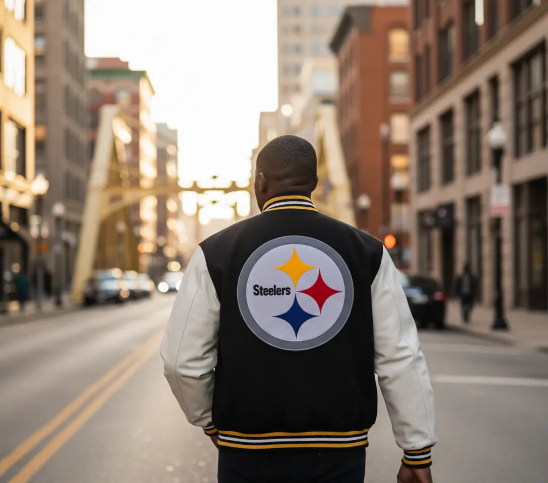 NFL Pittsburgh Steelers Letterman Varsity Jacket Wool with Real Leather Sleeves