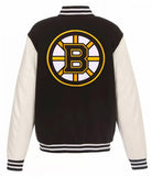 Men Boston Bruins White and Black Varsity Jacket - NHL