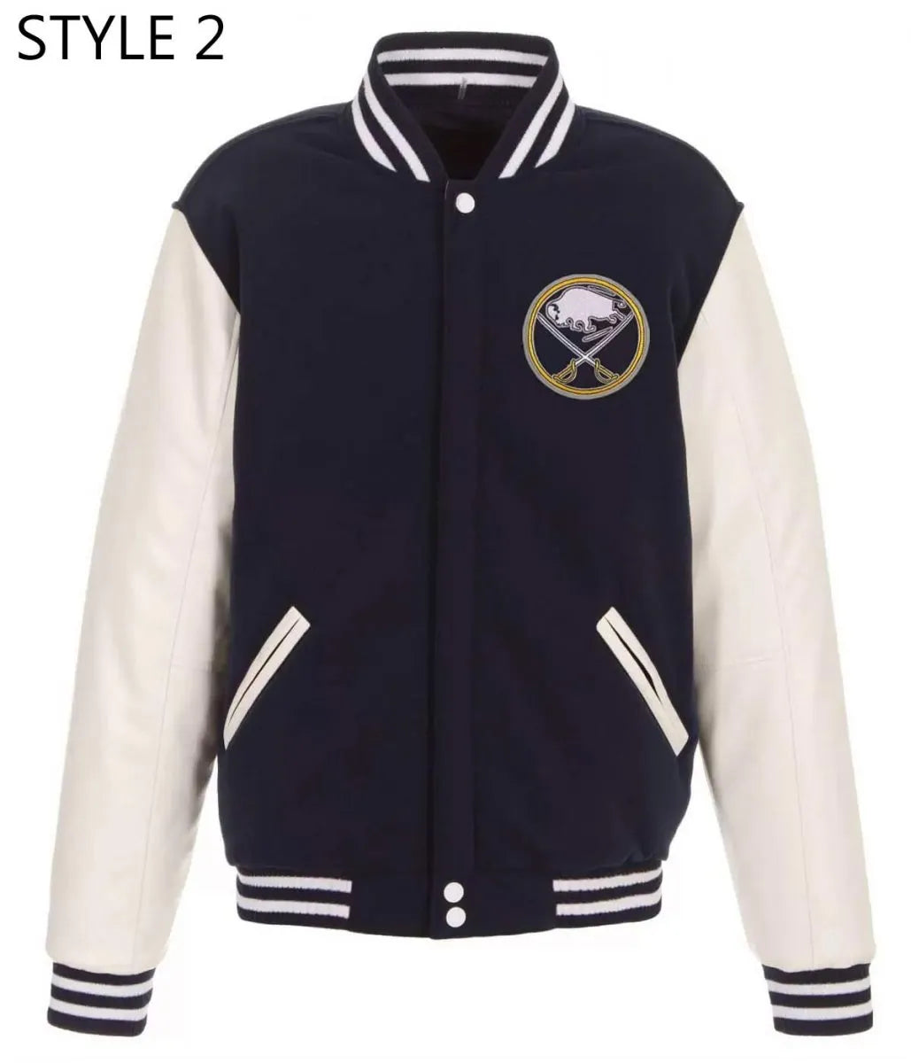 Men Buffalo Sabres Style 2 Navy and White Two Tone Varsity Jacket - NHL