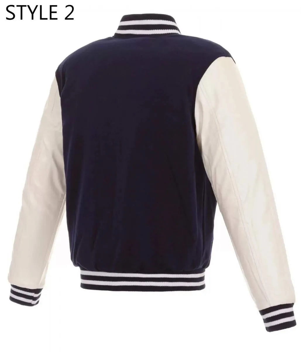 - Premium leather sleeves in crisp white for authentic varsity appeal