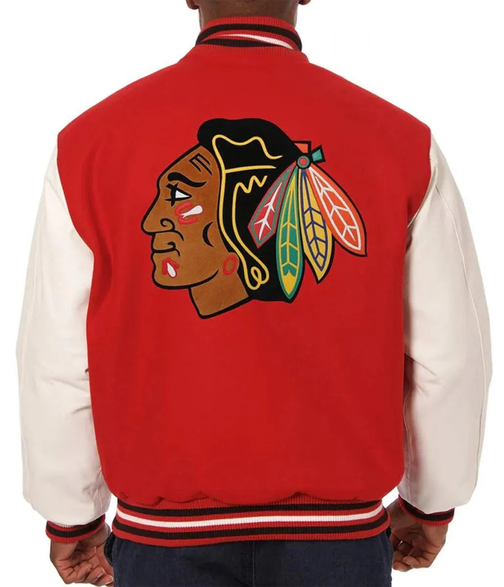 Chicago Blackhawks Red and White Two-Tone Varsity Jacket