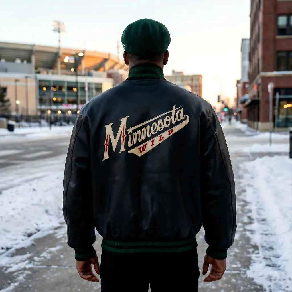 Official Minnesota Wild NHL leather varsity jacket
