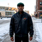 Men Minnesota Wild Black Leather Varsity Jacket - NHL