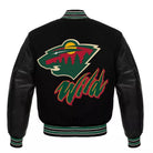 Minnesota Wild Black Letterman Varsity Jacket With Genuine Leather Sleeves