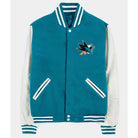 San Jose Sharks Varsity Jacket – Teal Wool & White Leather Sleeves