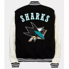 San Jose Sharks Varsity Jacket Black Wool with White Genuine Leather Sleeves