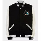 San Jose Sharks Varsity Jacket Black Wool with White Genuine Leather Sleeves