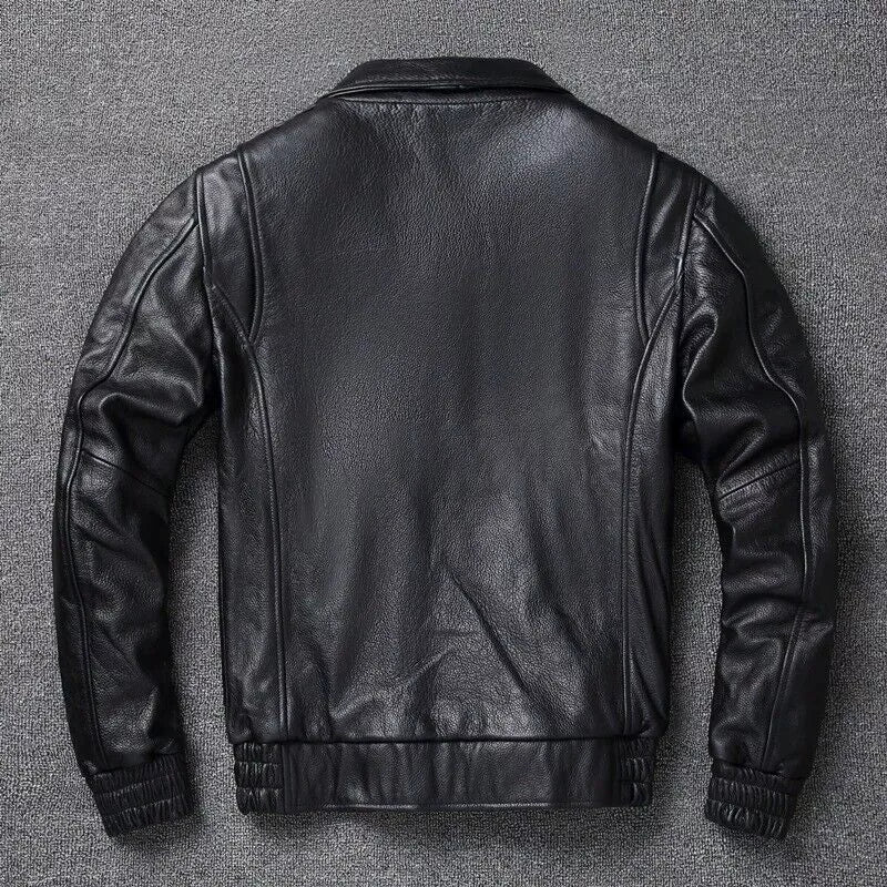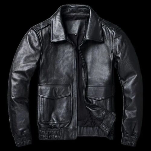 Men Black Motorcycle Flight Bomber Jacket Real Cowhide Leather Jacket