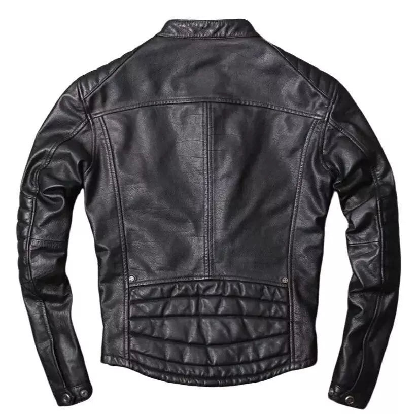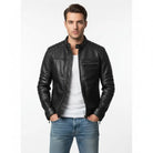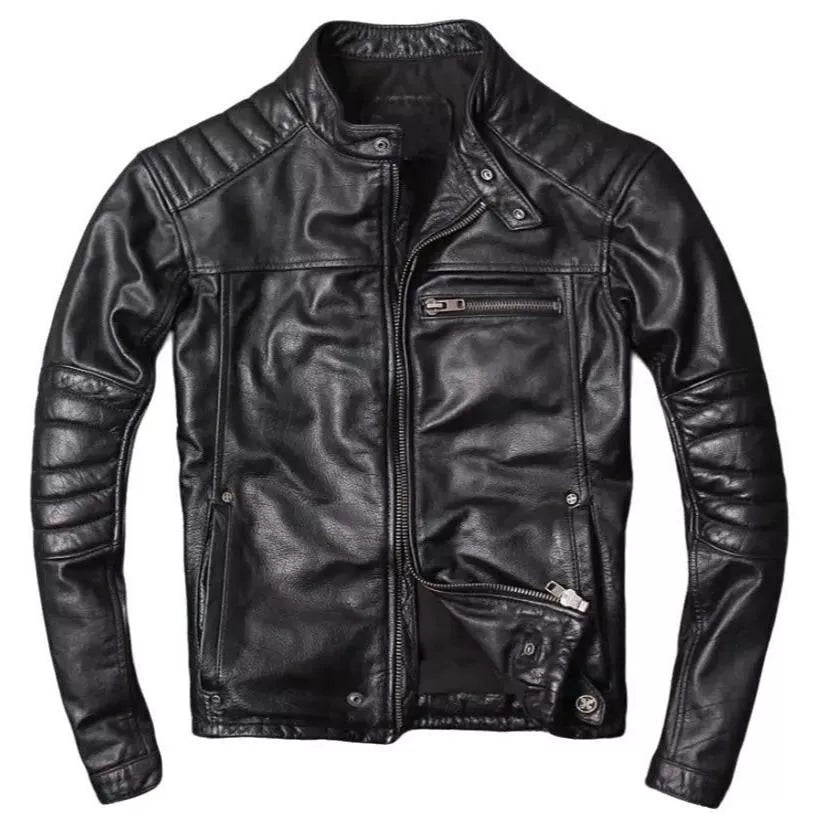 Men’s Leather Jacket Genuine Sheep skin Cafe Racer Motorcycle Biker Black