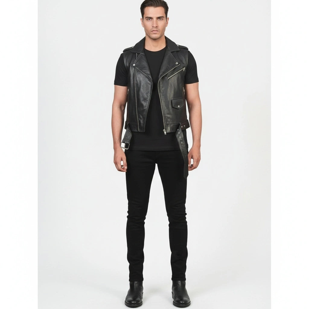 The Men’s Sullivan Black Leather Biker Vest combines classic biker style with modern sophistication. Crafted from high-quality genuine leather, this vest offers a smooth and durable feel, ensuring long-lasting comfort and reliability. The sleek black color adds a timeless appeal, making it a versatile addition to any wardrobe. Featuring a minimalist design with a zip-up front, this vest allows for easy layering over shirts, hoodies, or jackets. The tailored fit enhances your silhouette while offering the rugged edge every biker needs. Perfect for motorcycle enthusiasts or anyone looking to add a stylish yet functional piece to their wardrobe, the Sullivan Black Leather Biker Vest is a must-have.