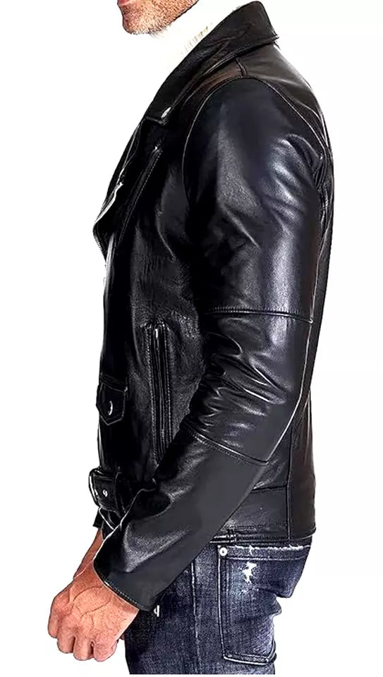 The Men's Leather Jacket in Sheepskin offers a sleek and durable black finish with the iconic Brando biker style. Designed for both motorcycle riders and fashion-forward individuals, this jacket combines comfort, style, and toughness, making it a must-have addition to your wardrobe.