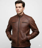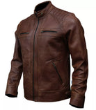Men's Leather Jacket Genuine Sheep Skin Café racer Style Biker Black & Brown