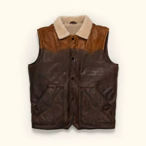 The Men’s Shearling Aviator B3 Bomber Vest is a timeless piece crafted from genuine brown sheepskin leather and lined with plush shearling fur. This sleeveless bomber vest offers warmth, durability, and a classic aviator look, perfect for layering in colder weather or as a bold fashion statement.