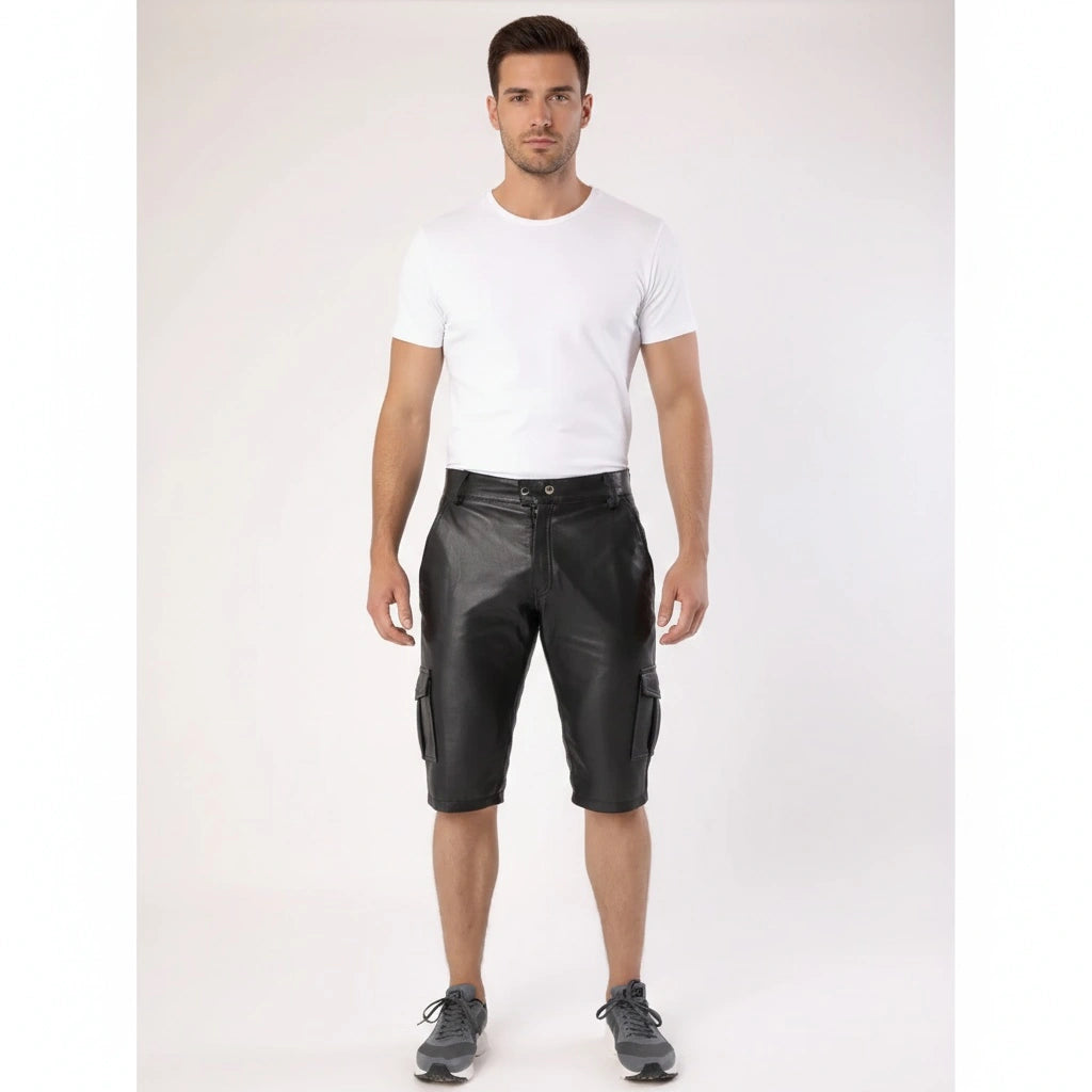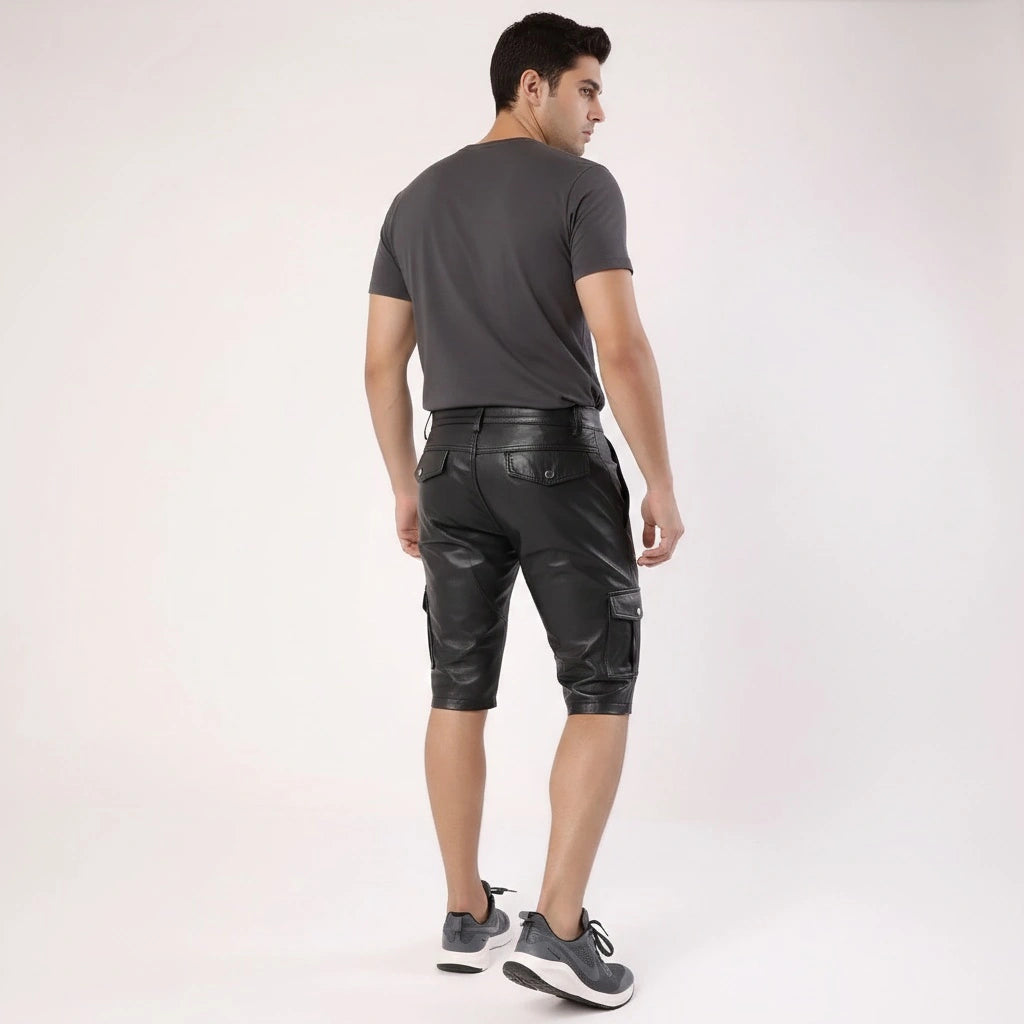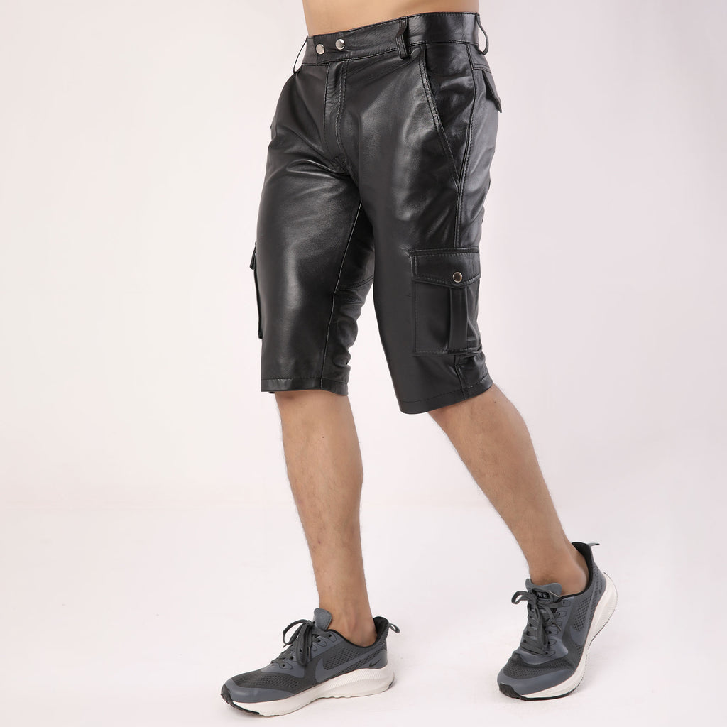 Men’s Black Real Leather Cargo Shorts – a perfect fusion of style and function. Crafted from premium, genuine leather, these cargo shorts give your wardrobe a rugged yet modern edge. Designed for men who value both comfort and style, these leather shorts make a bold statement and elevate any casual look.