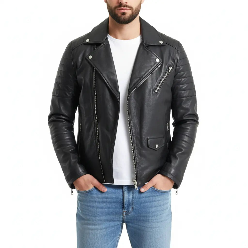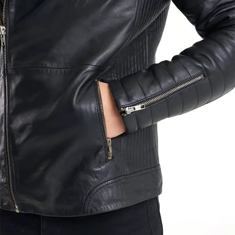 The Ribbed Sleeve Real Leather Jacket offers a blend of style and comfort with its premium leather construction and ribbed sleeve design. Perfect for casual wear, this jacket provides a sleek, modern look with added texture, making it ideal for everyday wear or a night out.