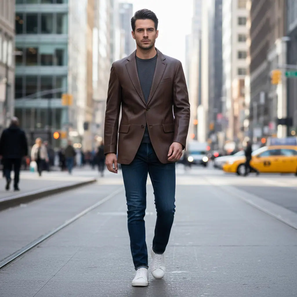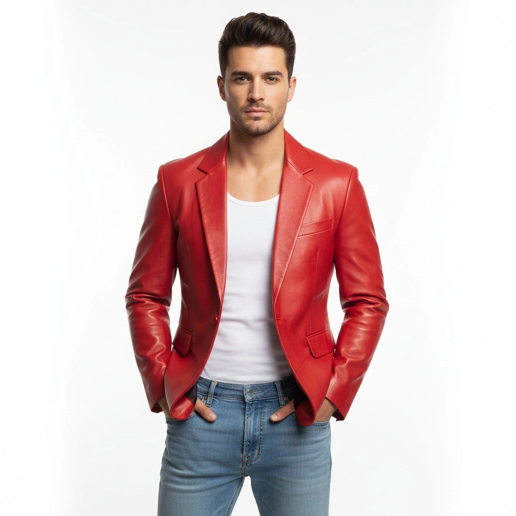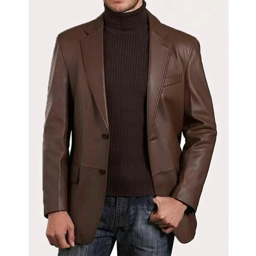 Men Handcrafted Leather Blazer Jacket Stylish Outerwear for Every Occasion Coat