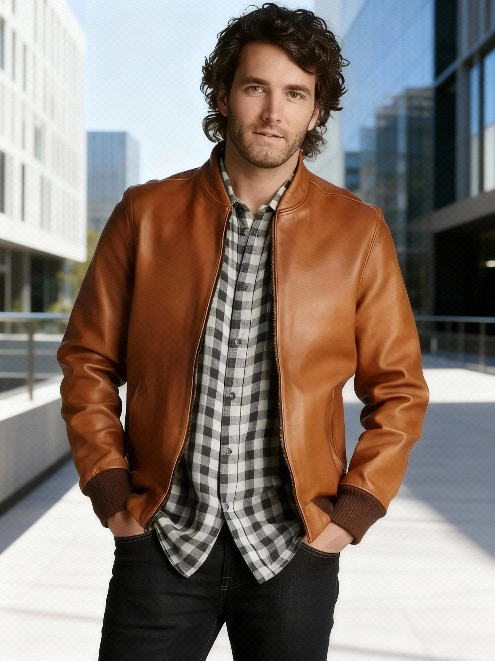 The Men’s Brown 100% Genuine Lambskin Leather Jacket is a sleek and stylish bomber coat made from premium lambskin leather. Offering a smooth finish and classic design, this jacket is perfect for casual wear, adding both warmth and style to your wardrobe.