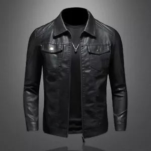 Men’s PU Leather Motorcycle Jacket – Waterproof, Thick, Slim Fit Lapel Jacket