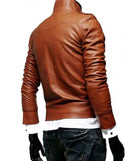 Men’s Slim Fit Tan Button Front Brown Leather Jacket