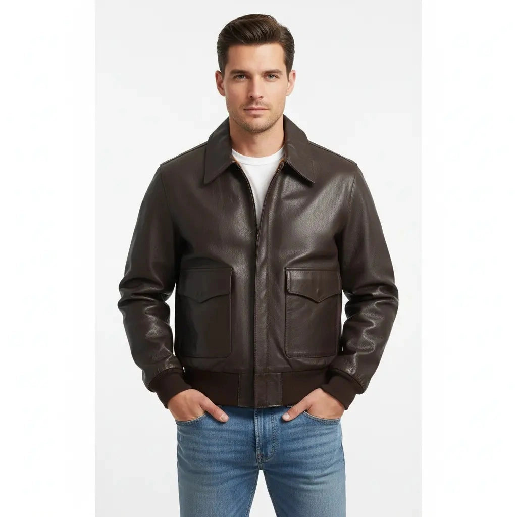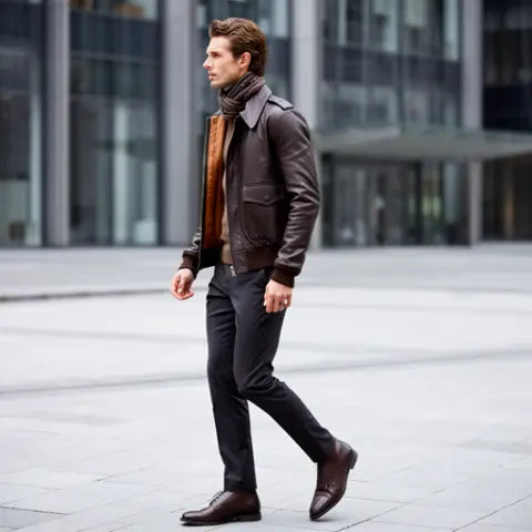 The Men's Air Force Leather Flight Bomber Jacket is a stylish, high-performance jacket that combines military-inspired design with modern functionality. Made from premium leather, this jacket offers durability and comfort, ensuring a smooth, sophisticated feel while providing a rugged, tough look. The classic bomber design is complemented by a cozy lining, making it an excellent choice for colder weather. With features like ribbed cuffs, a zip-up closure, and functional pockets, this jacket is designed for both style and practicality. Whether you're channeling the classic aviator look or simply looking for a versatile outerwear piece, this jacket is a timeless addition to any wardrobe.