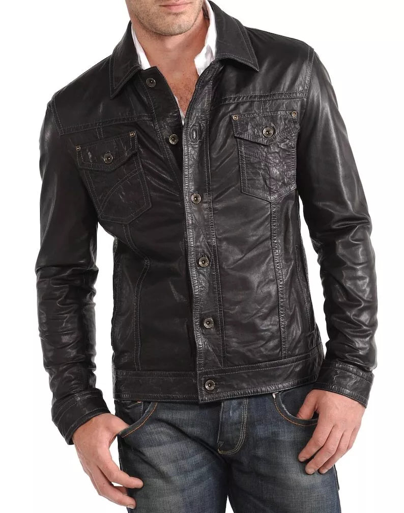Men's High Glamor Leather Jacket Stylish Motorcycle Biker Coat