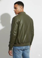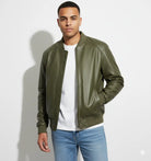 Men's Olive Green 100% Real Leather Jacket Designer Bomber Biker Handmade Coat