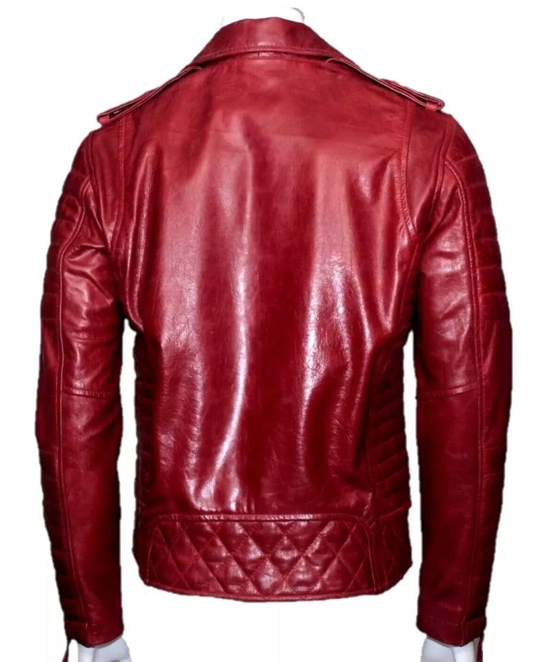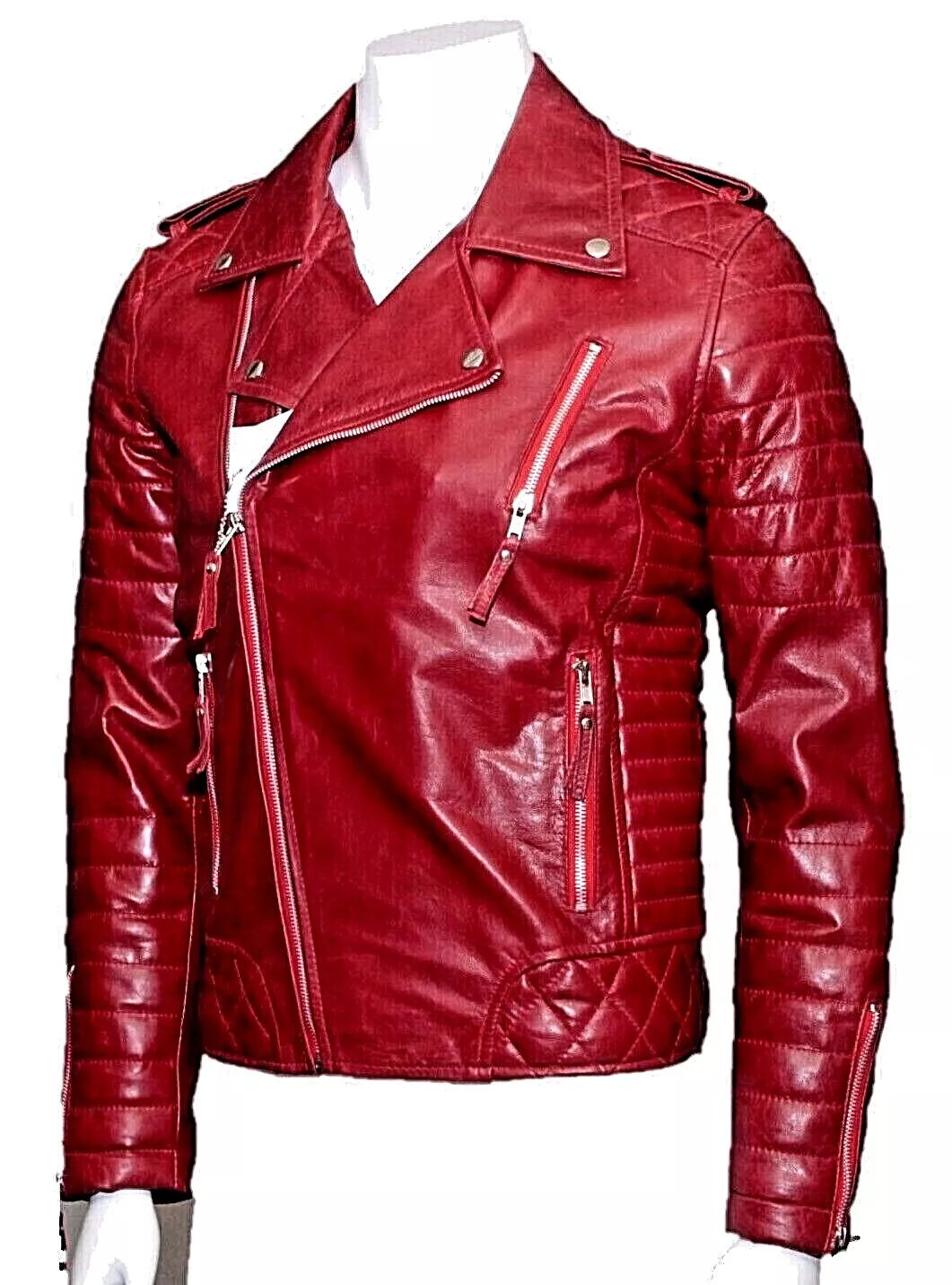 Men's Motorcycle Leather jacket Genuine Sheep Skin Brando Style Red Biker