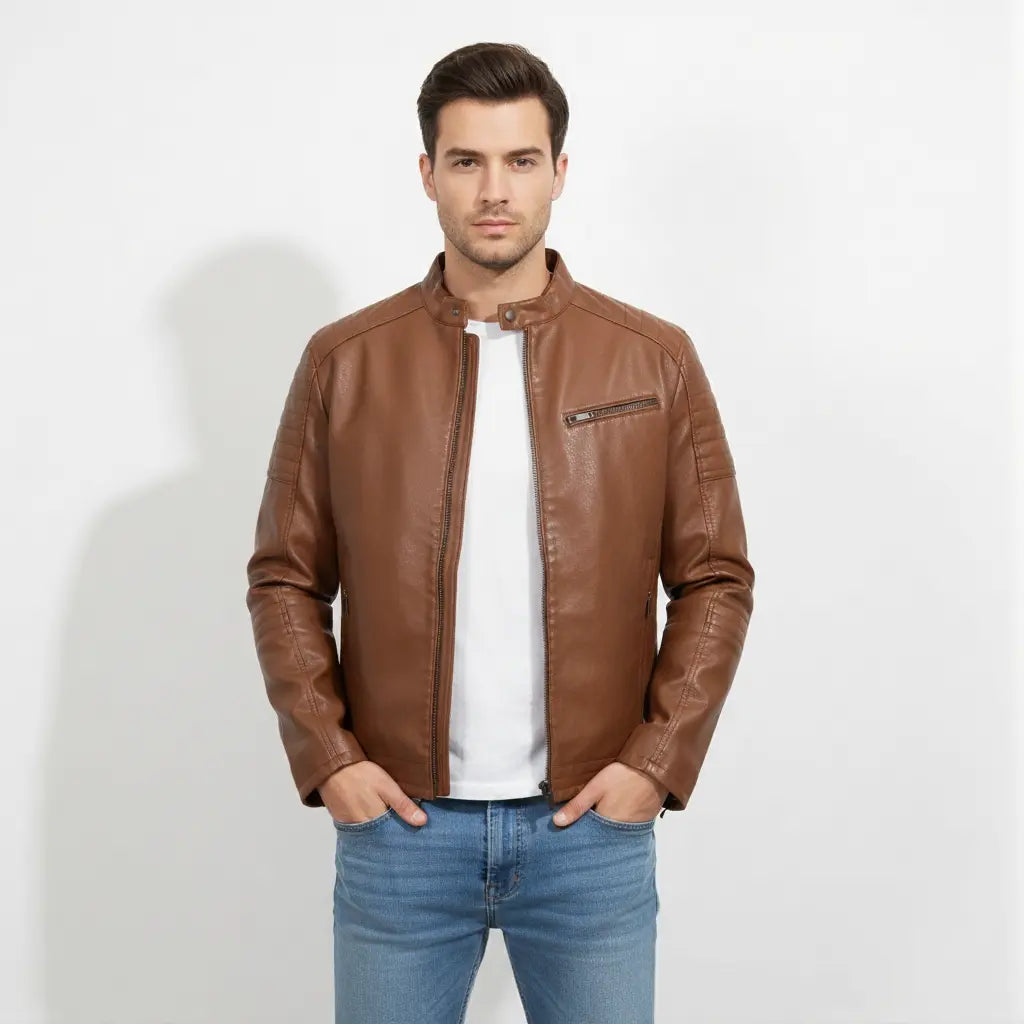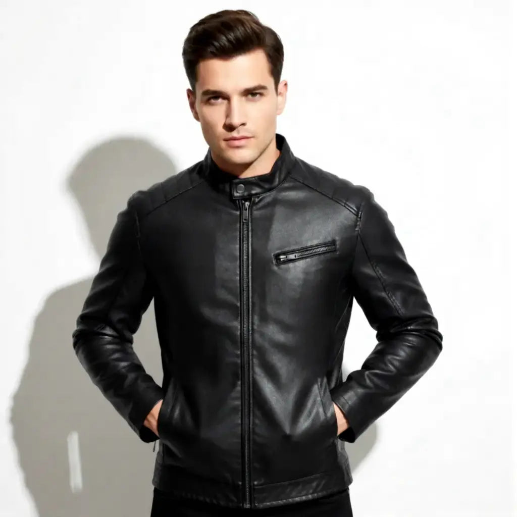 Men’s Leather Biker Jacket – Classic Slim Fit Motorcycle Coat, Durable & Stylish