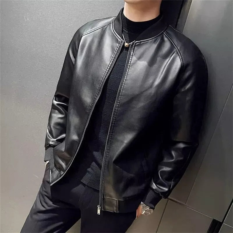 Men's PU Leather Jacket - Stylish Baseball Collar Casual & Motorcycle Outerwear