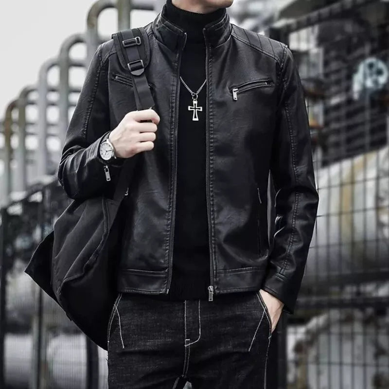Retro Biker Style Korean Slim Fit Men's Leather Jacket – Trendy Winter & Autumn