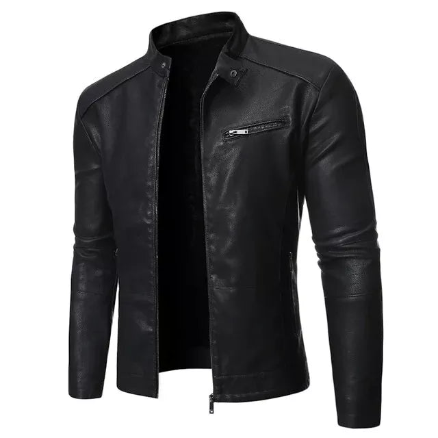 Men’s PU Leather Motorcycle Jacket – Waterproof, Thick, Slim Fit Lapel Jacket