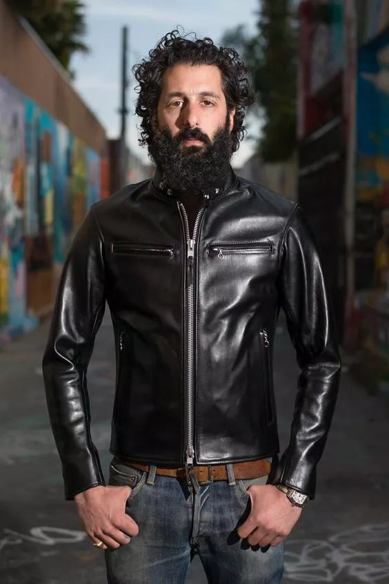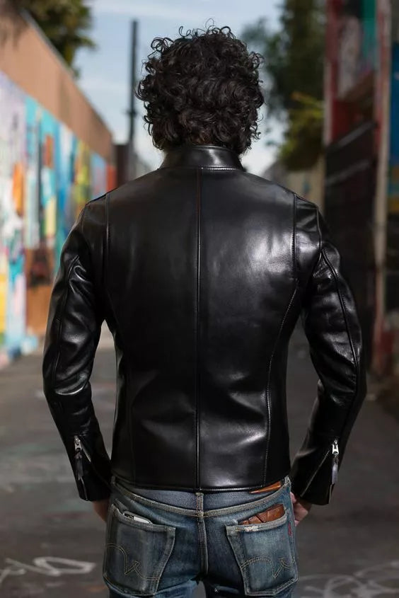 Men’s Black Cowhide Leather Luxury Tanned Cafe Racer Motorcycle slim Fit Jacket