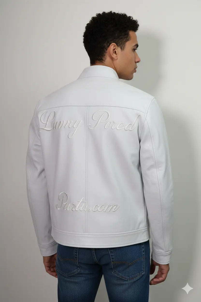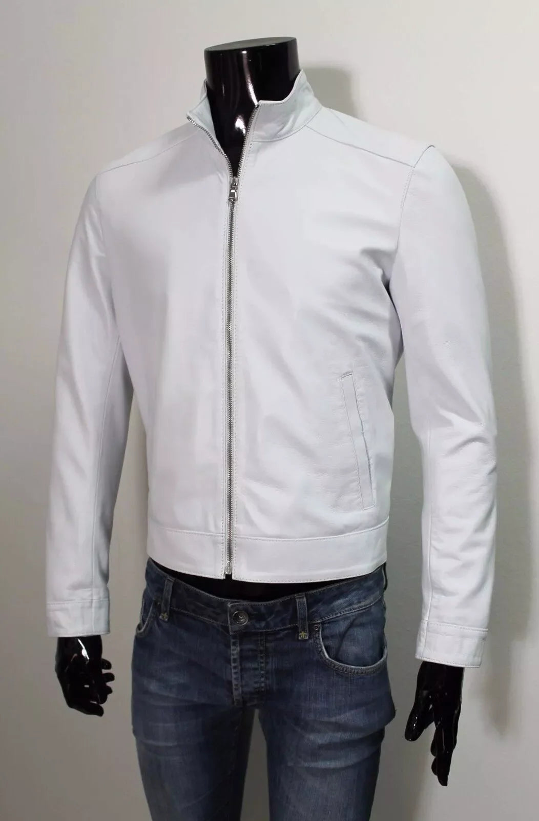 MEN HANDMADE GENUINE SOFT LAMBSKIN LEATHER JACKET WHITE COAT