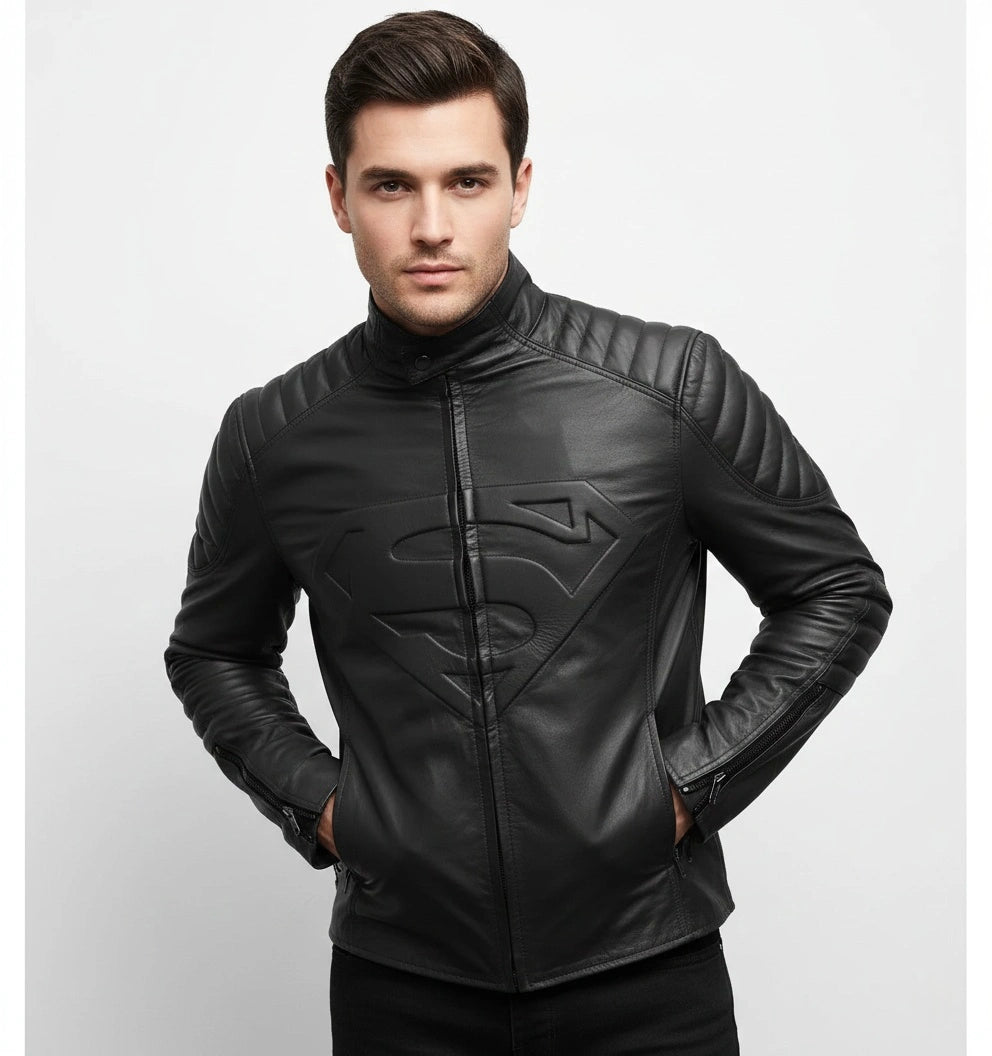 Get ready to save the world in style with this Superman-inspired leather jacket! Crafted from genuine leather, this black jacket features the iconic Superman shield on the back, making it a must-have for any DC Comics fan.