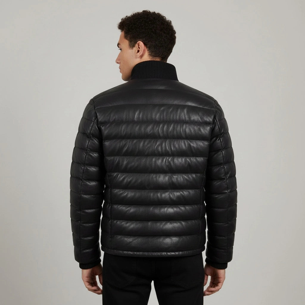 Men's Puffer Jacket Real Lambskin Leather Quilted Bomber Jacket - Dual Colors