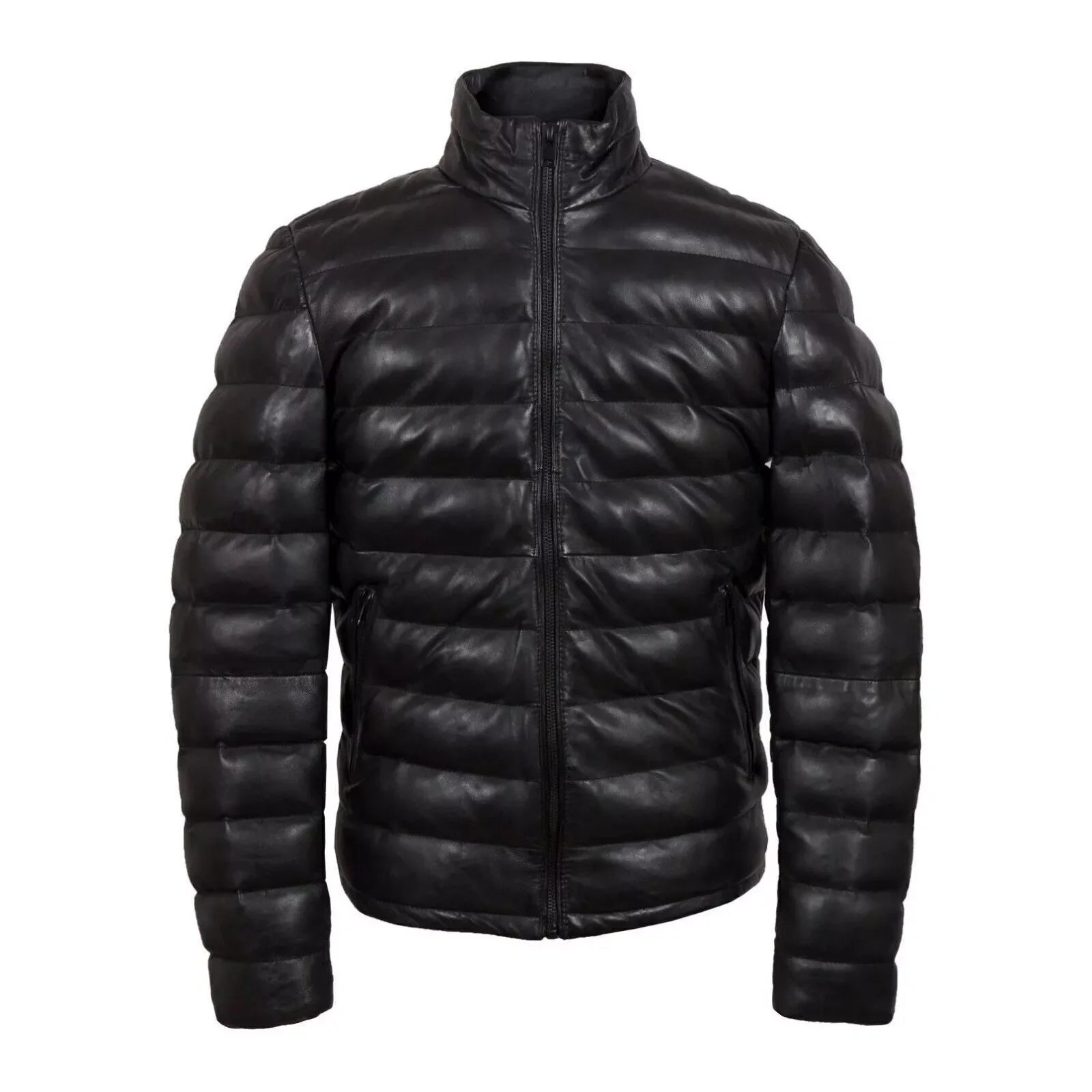 Men's Genuine Leather Puffer Jacket Winter Quilted Pure Lambskin Coat