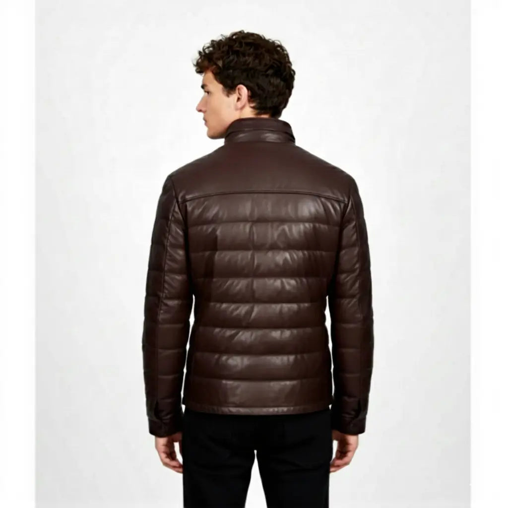 Men's Handmade Vintage Dark Brown Lambskin Leather Puffer Jacket