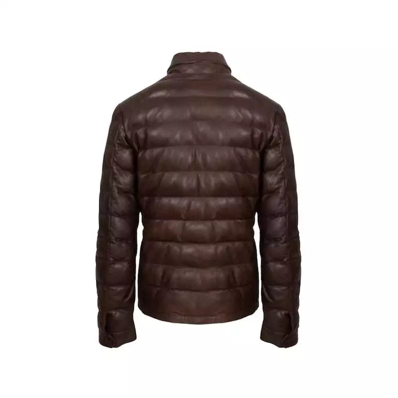 Men's Handmade Vintage Dark Brown Lambskin Leather Puffer Jacket