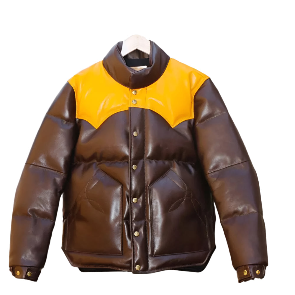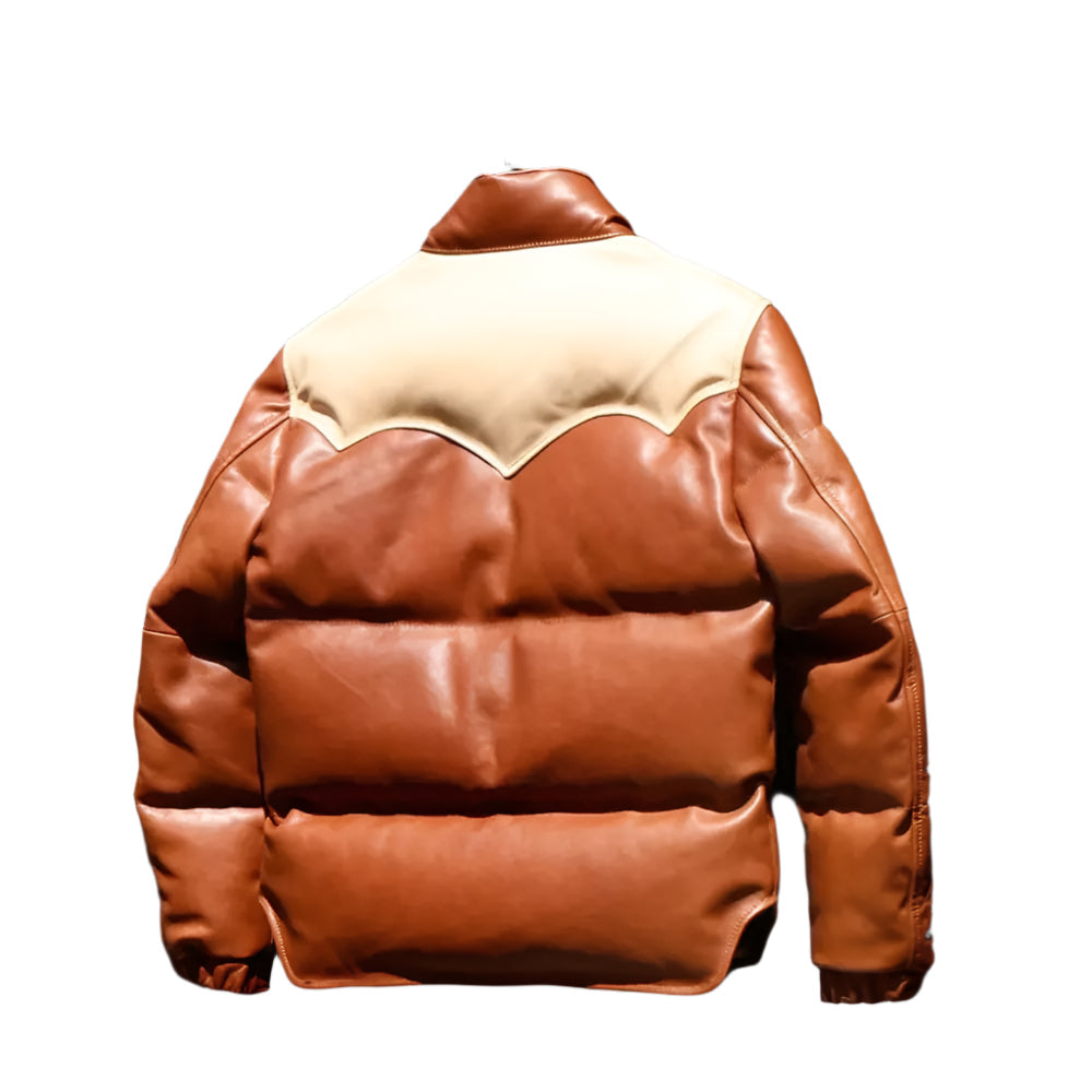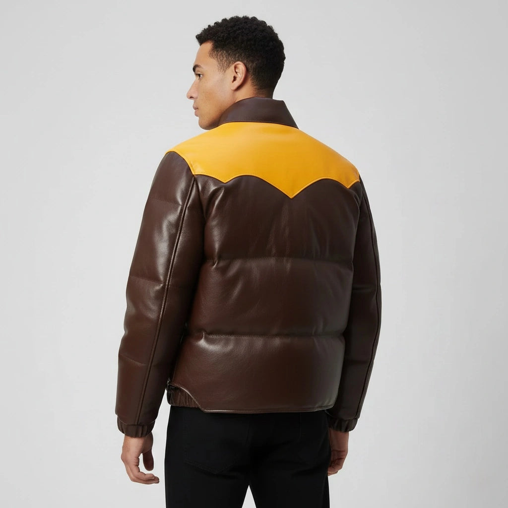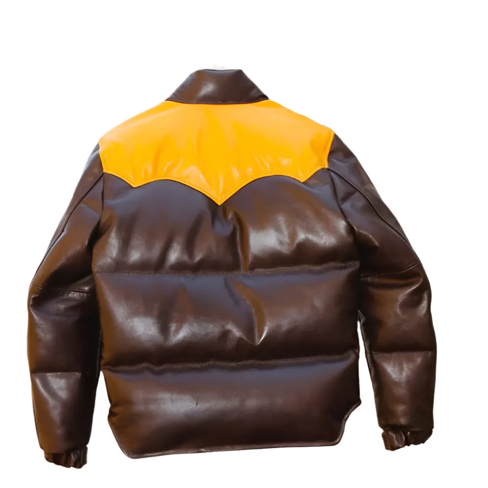 The Men’s Puffer Jacket Real Lambskin Leather Quilted Bomber Jacket in dual colors is a versatile and stylish outerwear piece. Whether you're braving the cold or simply want to add a statement piece to your wardrobe, this jacket combines the elegance of lambskin leather with the practicality of a quilted puffer design.