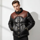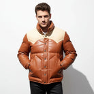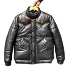 Men's Puffer Jacket Real Lambskin Leather Quilted Bomber Jacket - Dual Colors