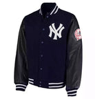 MLB Men's New York Yankees Navy Wool with Black Leather Sleeves Varsity Jacket