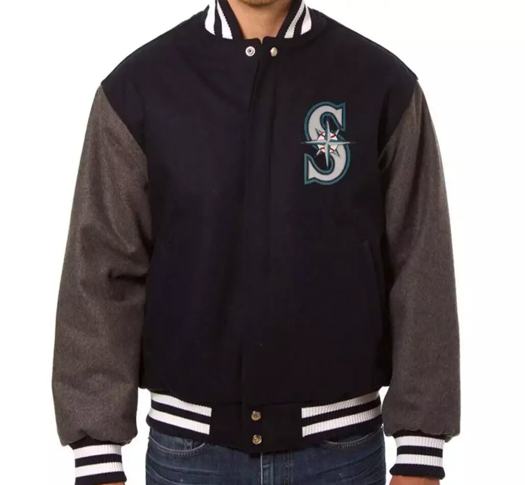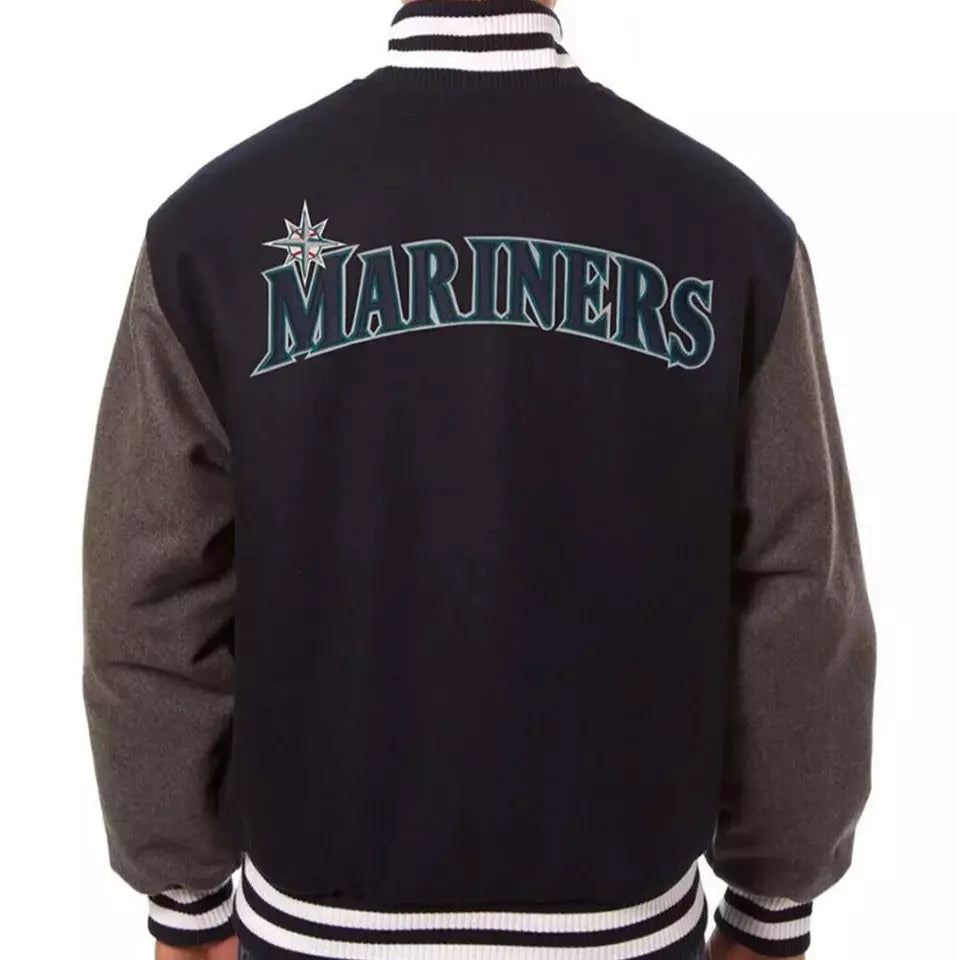 MLB Men's Seattle Mariners Navy and Grey Varsity Jacket