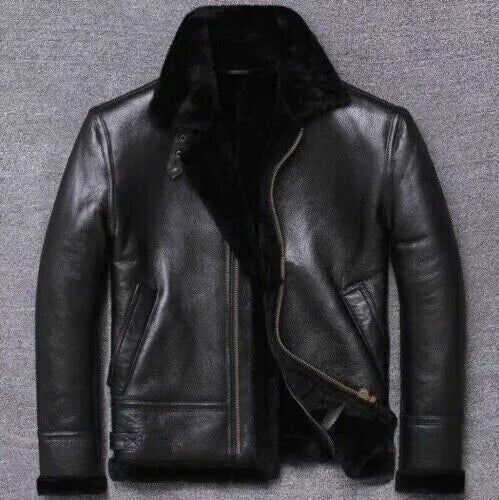 Men's Black RAF Flight B3 Bomber Aviator Real Sheepskin Shearling Leather Jacket