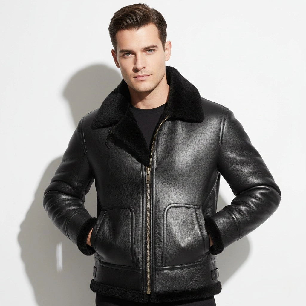 Experience the perfect blend of warmth and style with the Men’s Black RAF Flight B3 Bomber Aviator Jacket. Made from real sheepskin leather with a plush shearling lining, this jacket offers a classic pilot-inspired look, ideal for colder weather. Perfect for aviation enthusiasts and winter wear.