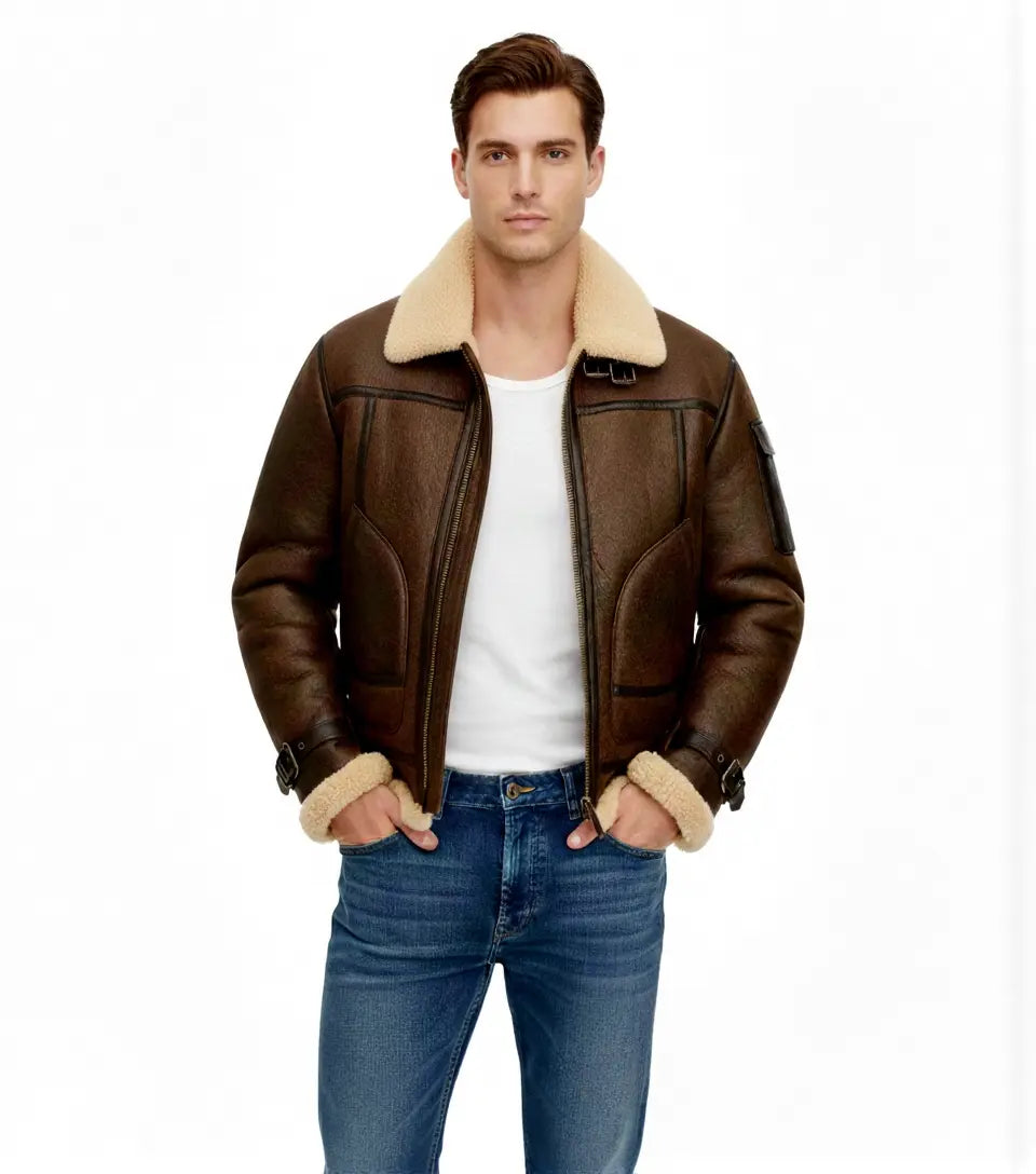 Stay warm and stylish with the Men’s Flying Pilot B3 Bomber Coat. Crafted from genuine sheepskin leather with a luxurious shearling fur lining, this classic winter coat offers unmatched warmth and comfort. Perfect for cold weather, aviation enthusiasts, and vintage style lovers.