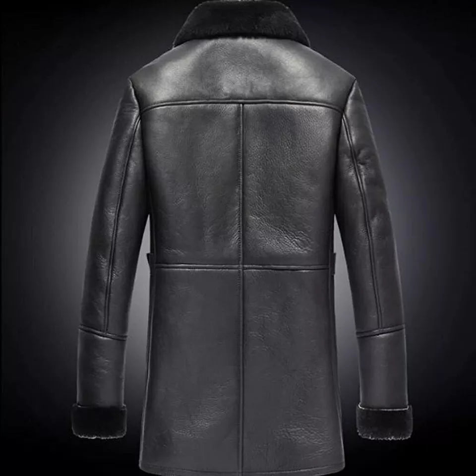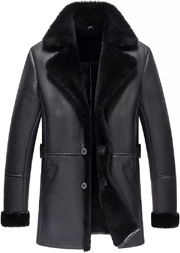 Men's Aviator Pilot RAF B3 Flying Fur Lambskin Leather Shearling trench coat
