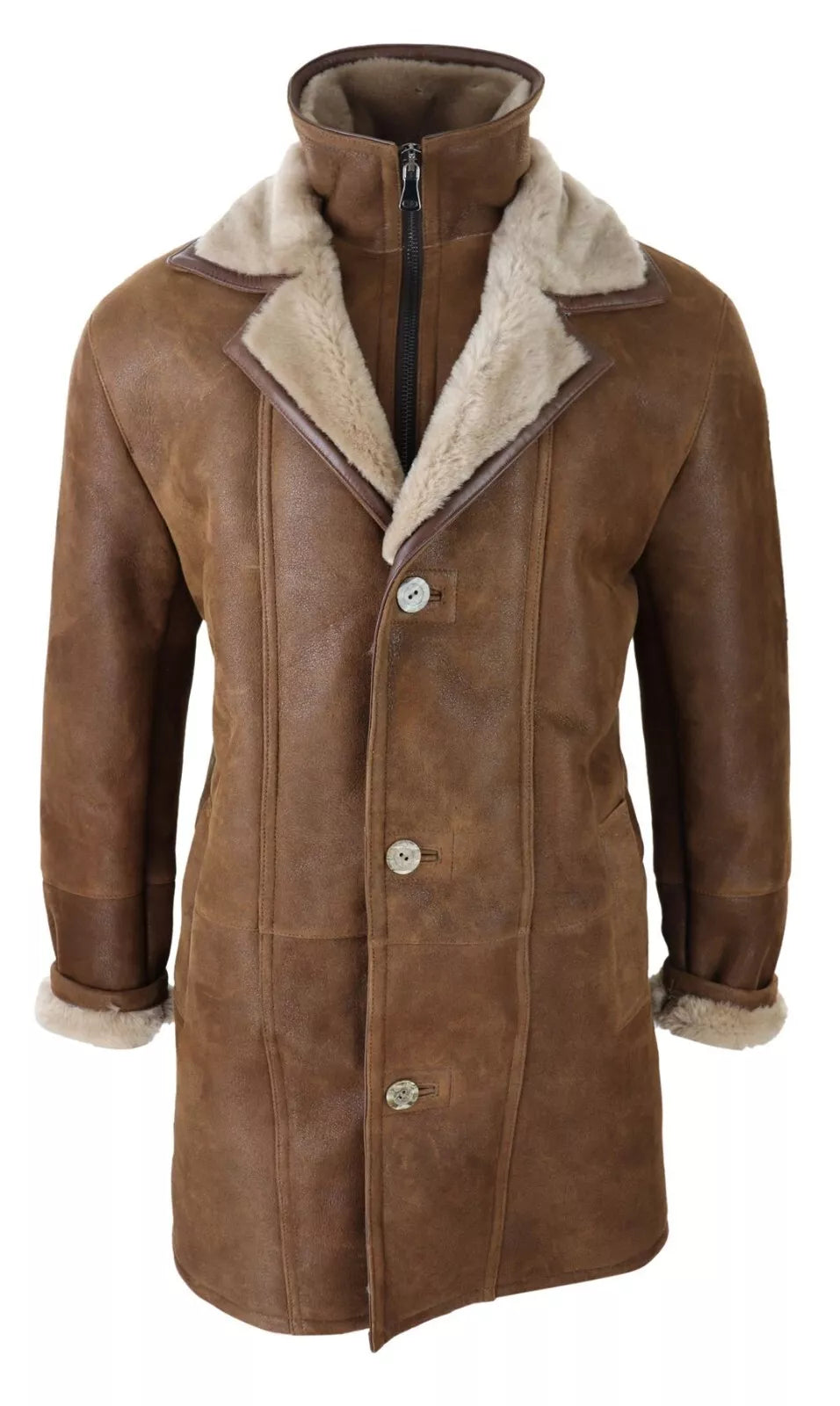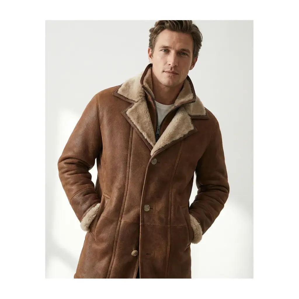 Men Bomber Brown Aviator Pilot B3 RAF Flying Fur Shearling Leather Trench Coat